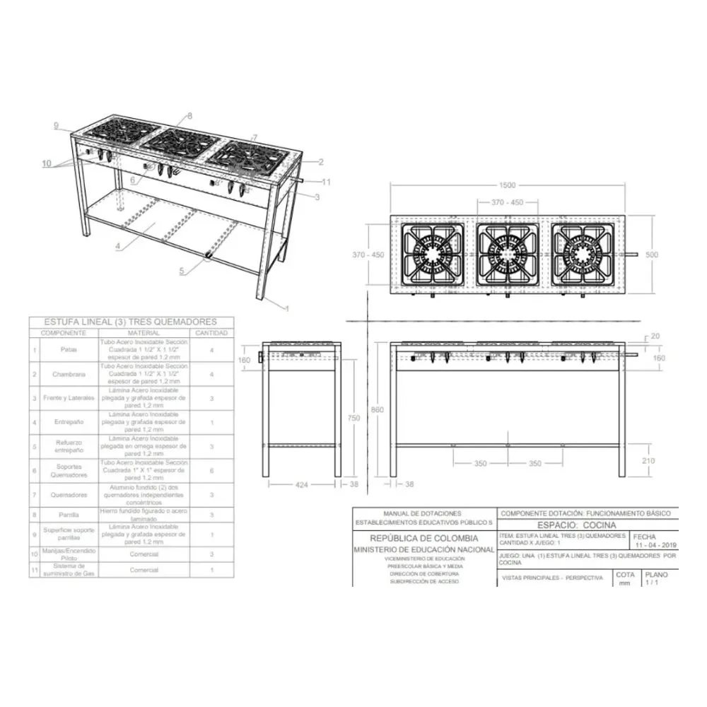 ESTUFA LINEAL DE DE 3 PUESTOS – DOBLE QUEMADOR